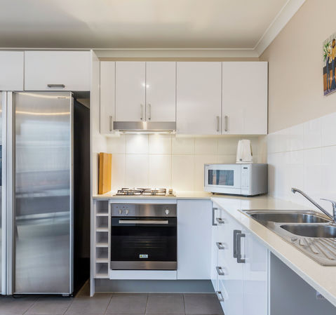 Offering open plan living and dining with kitchen boasting stone bench tops, gas cooking, gas cook top with electric oven and rangehood.