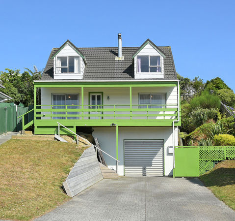 This is a lovely large 150m2 three bedroom home with very large bedrooms. It is located in Newlands on a elevated 489m2 approx section. Accommodations are arranged over two levels; On the first floor is the large living with log burner, dining and open plan kitchen, separate laundry, WC, and first bathroom and one good sized bedroom. Upstairs are two very large bedrooms and the second bathroom and WC. This home has a lot of storage and large wardrobes. With great street appeal, a single garage, lots of off street parking, private sunny child and pet safe section this lovely home will appeal to many families.