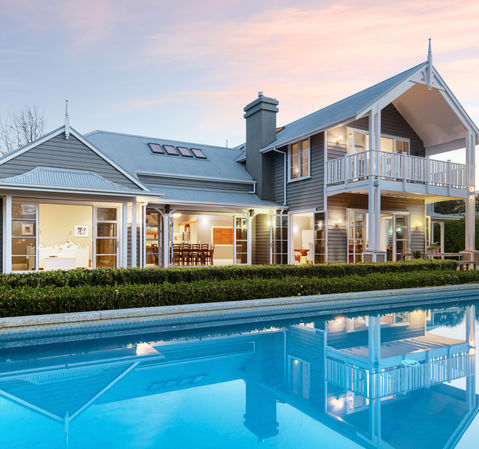 The inspiration is traditional villa, the execution exuding excellence in spacious, gracious contemporary family living where copious external doors to low decks bringing the outside in for seamless connection with the grounds and hedge-moated pool. Enter the double timber doors to a wide foyer, off which an office has visual access to the living space. Raked ceilings and sky-lights create airy ambience in a comprehensively appointed entertainers kitchen and dining space. Two generous linked lounges for relaxing, socialising and media watching, children's bedroom wing downstairs, beautiful master suite with balcony above. All three bathrooms are stylish and spacious, the big laundry/ mudroom with rear deck access is practical on a rural property. A home that is glorious to live in (and out) in summer, sunny and well heated in winter.