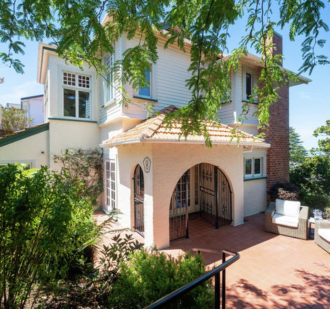 This timeless two-storey Louis Hay designed residence occupies an elevated position on Napier Hill with expansive views over the city and out to Cape Kidnappers. The home has been fully renovated to the highest standard including an extension to the kitchen/living area. In doing so, great care has been taken to ensure all period features that make this home so special, have been retained. On entry, you will be impressed with the arched wrought iron entrance way gates. Equally so with the interior which is immaculately presented with its extensive Rimu panelling, leadlight windows, polished timber floors and high stud moulded ceilings.
