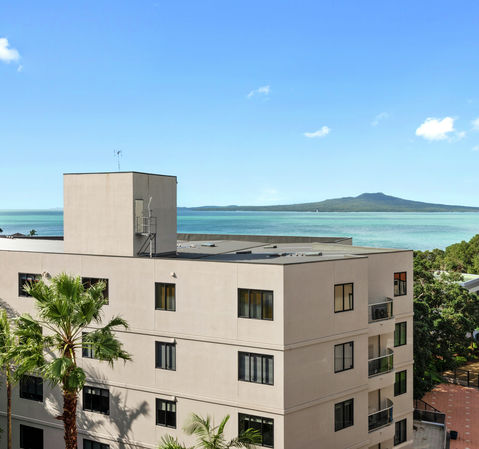 An action packed sea and Rangitoto vista from this penthouse will keep you entertained here in the super popular Mon Desir. Apartment PB is on the 5th floor, north eastern corner of 'the Mon', 124sqm floor area, three bedrooms, two bathrooms with a great balcony running the full length of this one level apartment. With a close up view of Rangitoto and Hauraki Gulf and direct beach access, Takapuna's version of the Gold Coast, with an envious beach and cafe lifestyle. Bathed in sun with spacious living area, ranchsliders open up from here and the ensuited master bedroom. Amenities include rubbish chute, gymnasium, swimming pool, visitor carparking. Beautiful tropical gardens and lawn flow to the swimming pool and beach gate. Your Takapuna beach lifestyle awaits with vibrant Takapuna eateries on your doorstep. Two parallel carparks and a enormous storage room (20sqm approx), a perfect man cave!