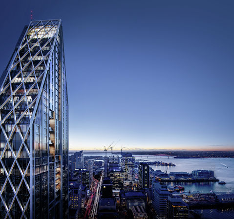 The iconic tower, now under construction, will be the tallest building in New Zealand upon completion offering the ultimate water views in City of Sails.
