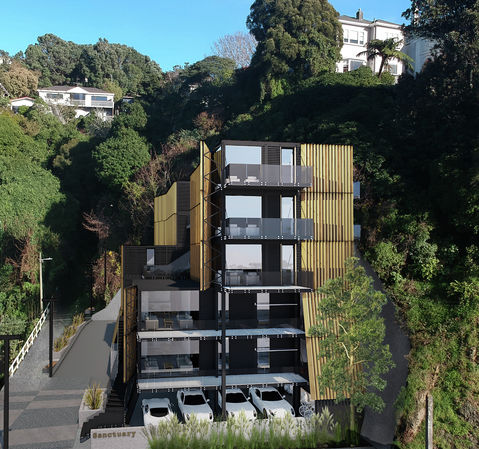 With convenience, safety and high-end design in mind, and situated at the city end of Karori, close to the bus stop, 2 km to Wellington City, and 1.5 km to the University. All apartments have covered carparks, balconies, 6-Homestar-rating, double glazing, over-code insulation, remote door control, central heating, high-end appliances, lift to each floor, and an earthquake code above 120%. The three-bedroom apartments have an ensuite and walk-in wardrobe.